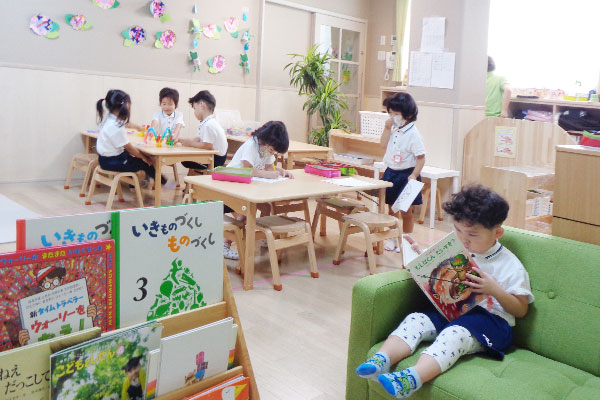 『 保育室 』は私のお部屋保育室には夢中になって取り組める遊具や教材がいっぱい。自由に安心して遊びに集中できます。また、疲れたらソファに座って一休み。さらに、お友だちと一緒に楽しく遊ぶなかで、お互いをいたわる心が芽生えます。そう『保育室』は、遊びを通じて子どもを伸ばす大切なお部屋なのです。 -